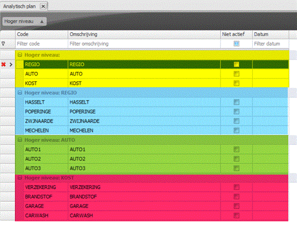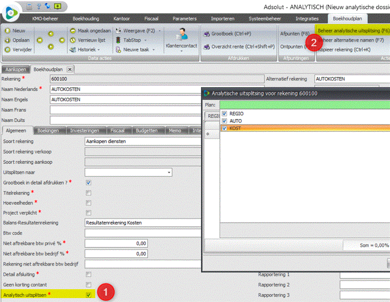 | Voorbeeld van een analytisch plan met meerdere dimensies in Adsolut | |