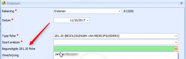- Nu kunt u wel de begunstigde 281.20 Fiche selecteren