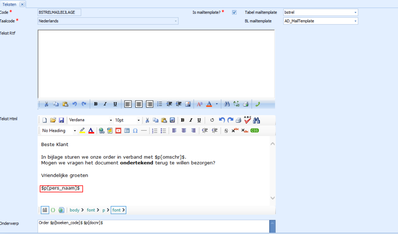 Parameters toevoegen aan een e-mail template in Adsolut KMO-beheer?