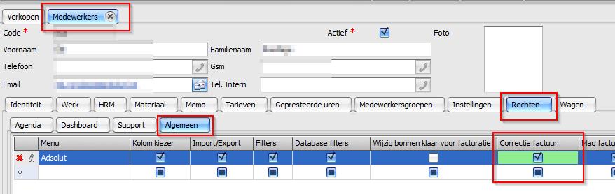 - Ga naar Parameters > Medewerkers en open de medewerker die de factuur gaat verwijderen.